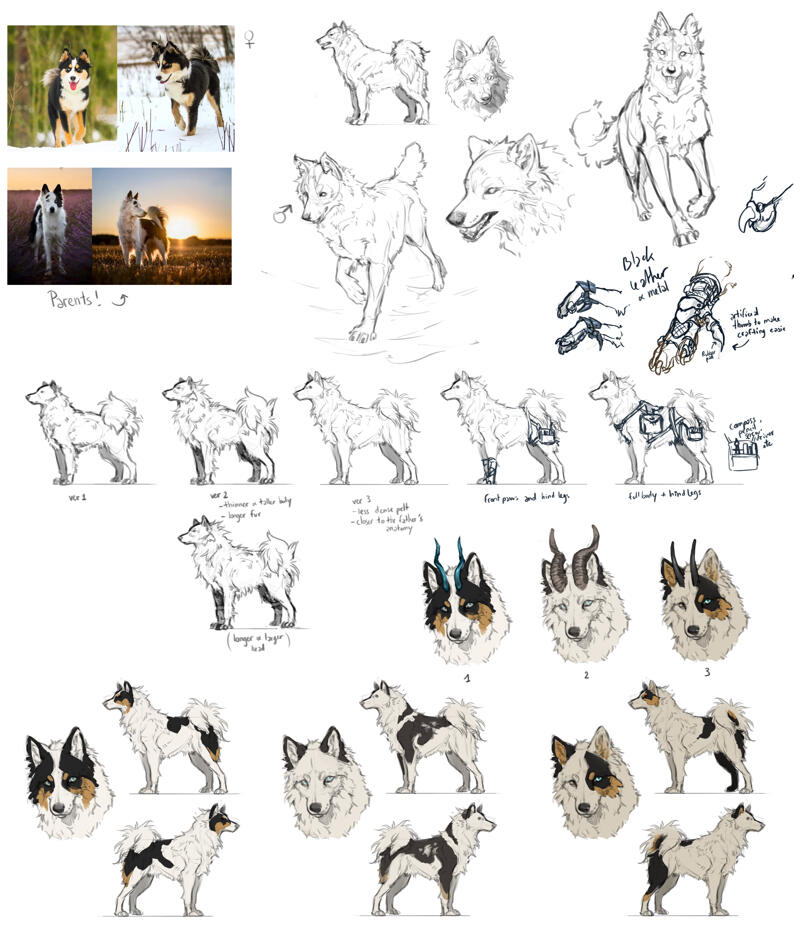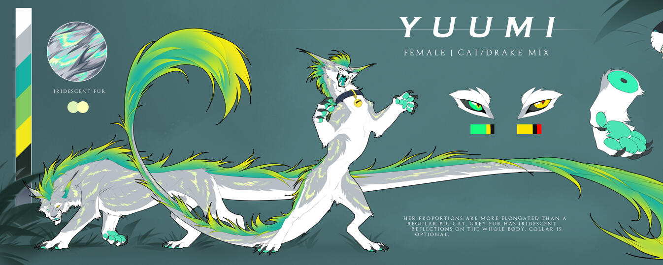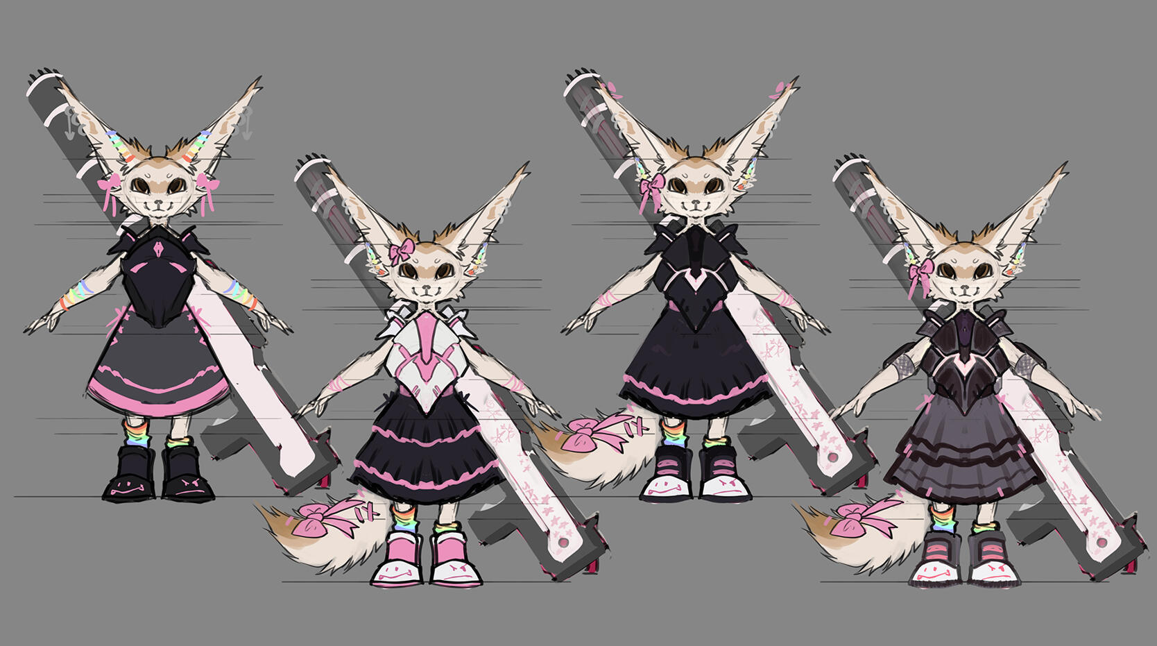 Reference sheets are modular, and can be adapted to your needs. You can chose as many elements as you want on it. The style used for ref sheets is lined flat color.