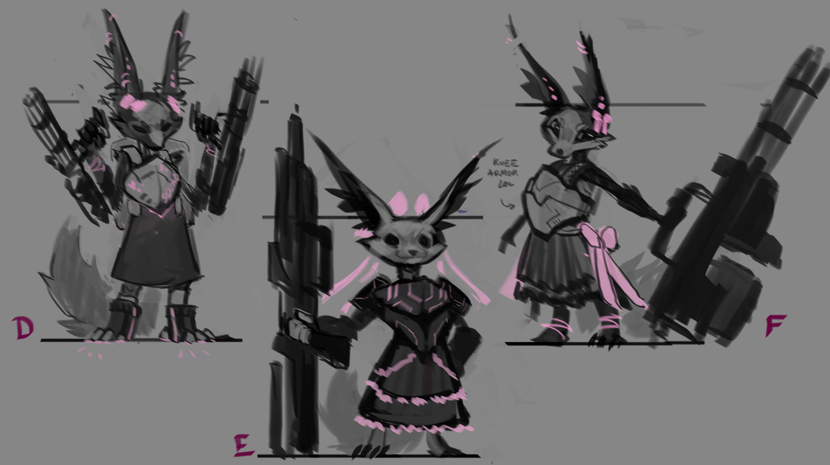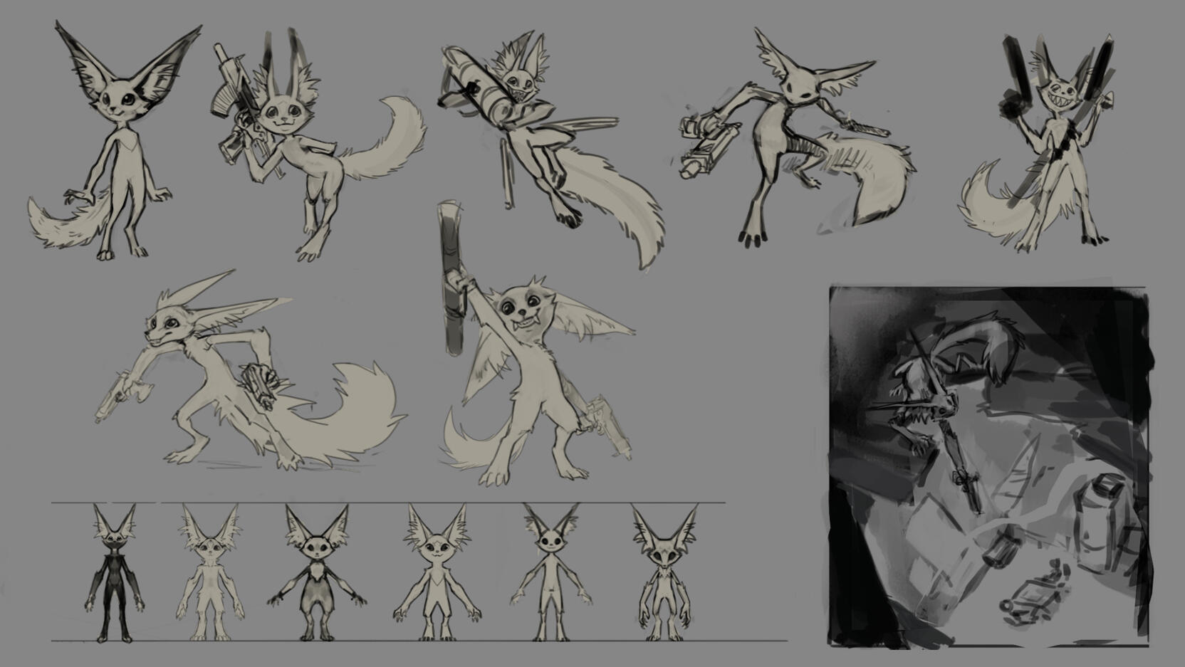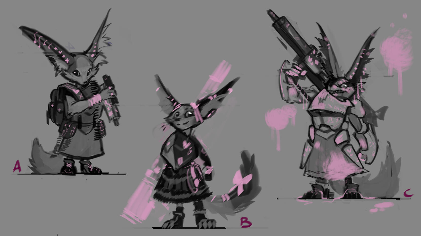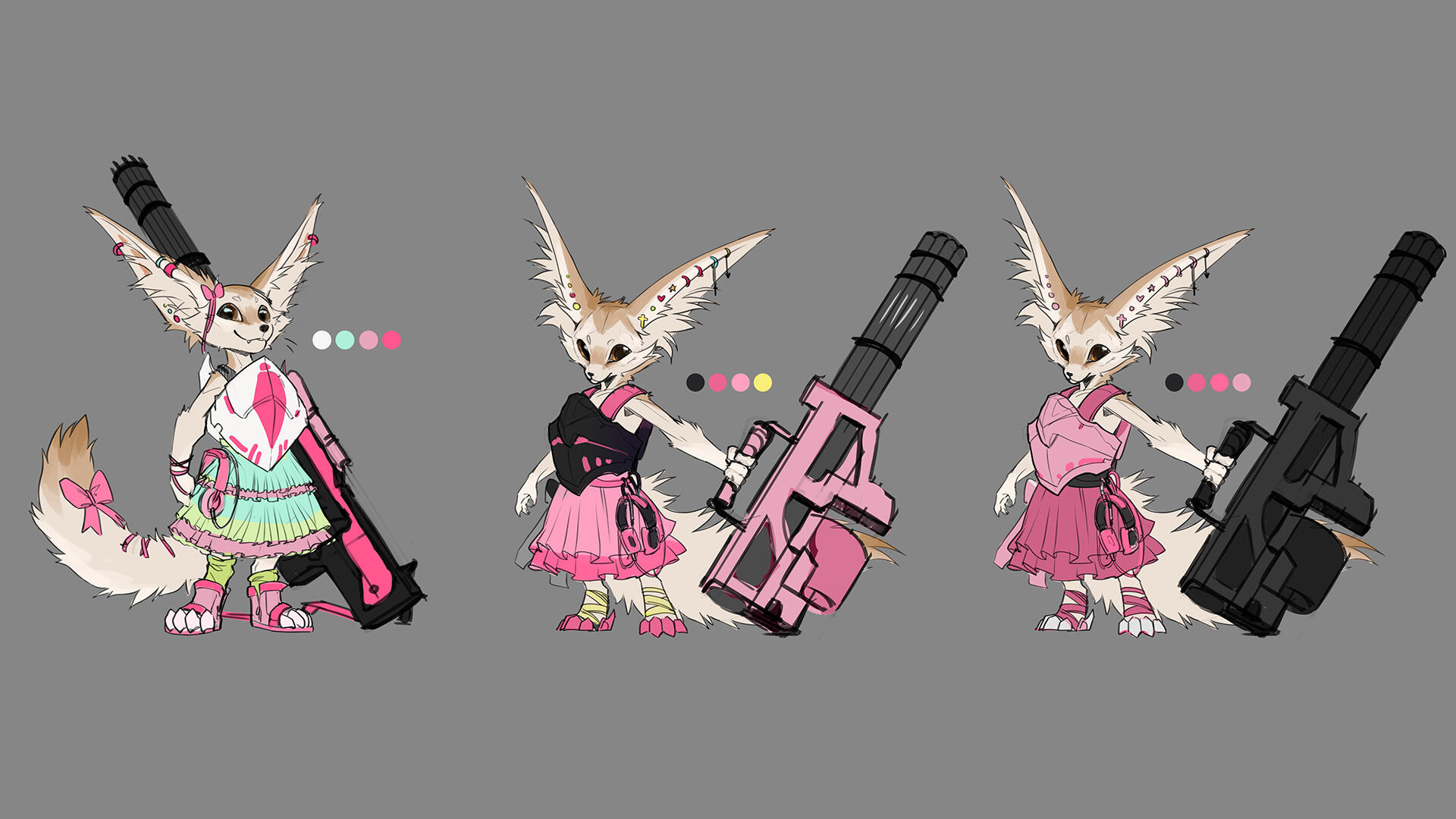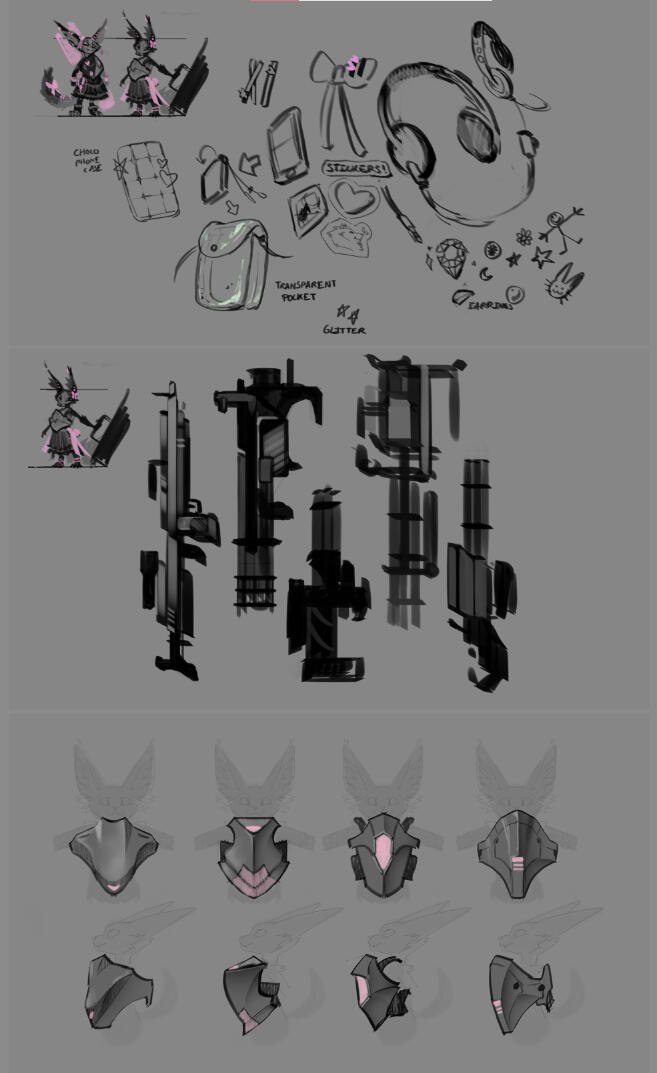 Once 1 or 2 base thumbnail have been chosen, we move on to step 2, in which we'll finetune the design (figuring out the colors, details, clothing, accessories, etc...).